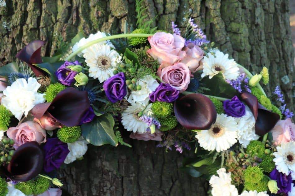 A perfect wreath with the choicest of flowers and bold beautiful colours, a tribute suitable for ladies or gentlemen to include calla lilys, roses, thistles, germinis and other choicest flowers of the day