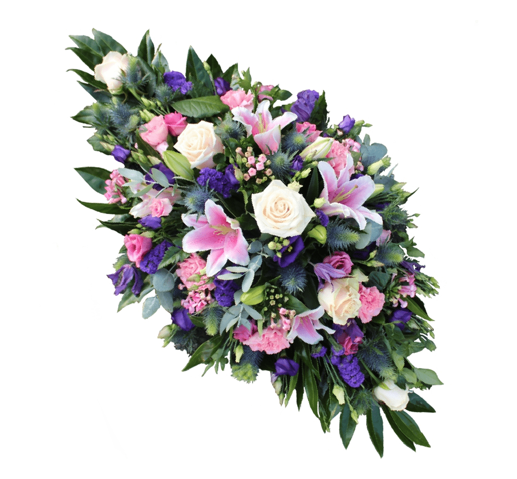 A Thoughtful Farewell with Lasting Comfort: Our sympathy spray serves as more than just a bouquet – it’s a heartfelt expression of your emotions during a time of loss. The combination of pink, white, and purple hues signifies a gentle and compassionate farewell, bringing comfort to both the bereaved and those who gather to pay their respects. This arrangement stands as a meaningful reminder of the enduring impact your loved one had on the lives they touched.