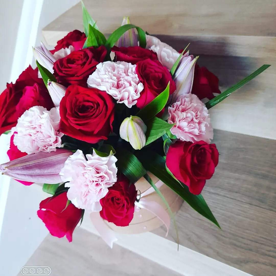 this hatbox of roses and pink flowers conveys your emotions with grace and style.
