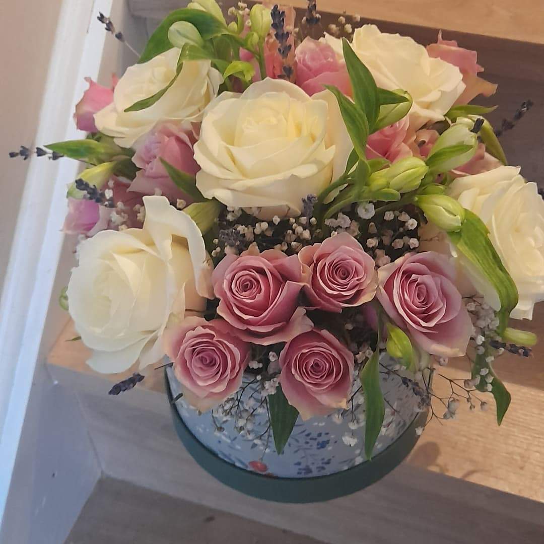 White and Pink Roses Hatbox