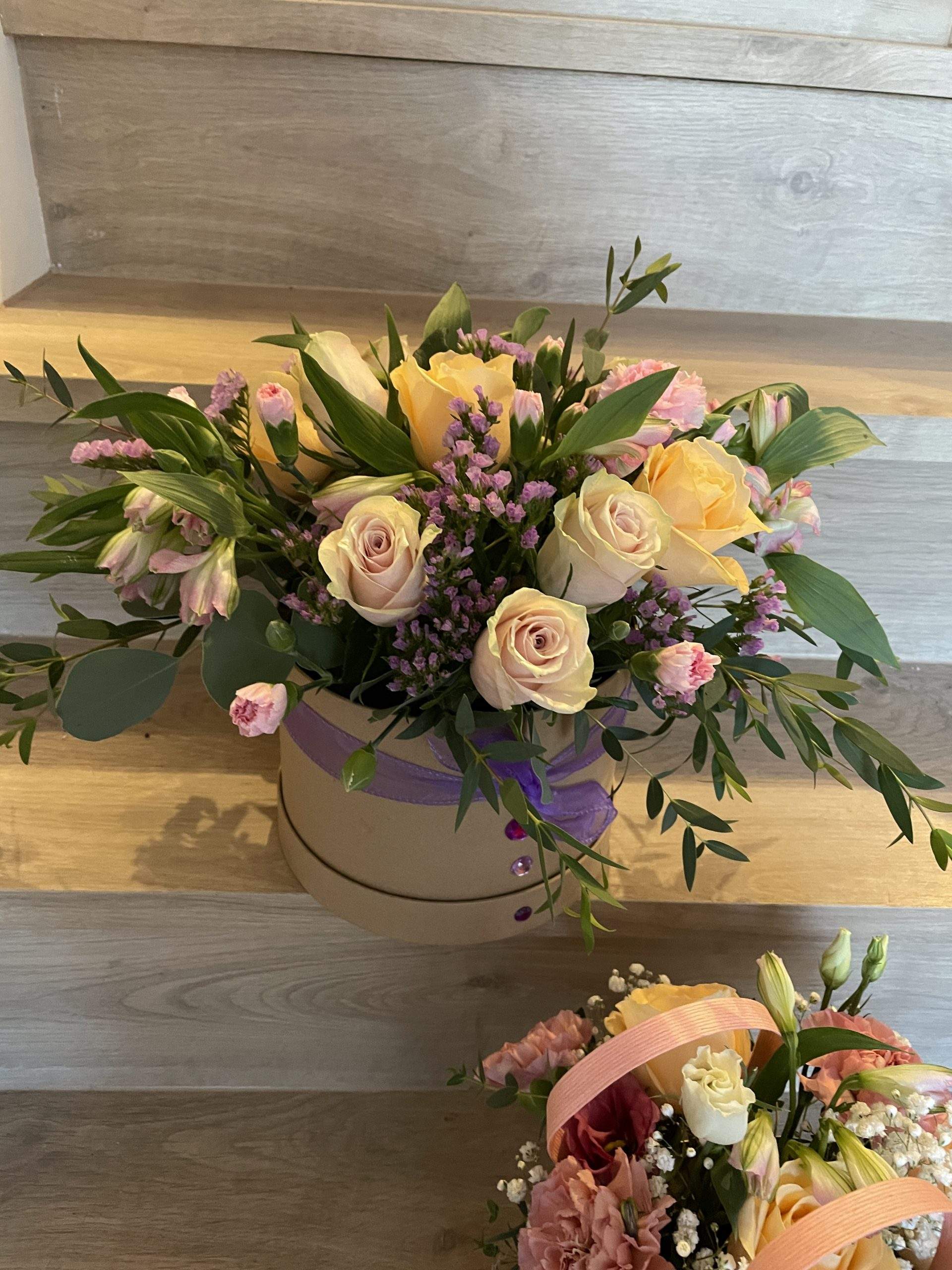 artfully arranged in a stylish hatbox, making them a perfect gift that requires no arranging
